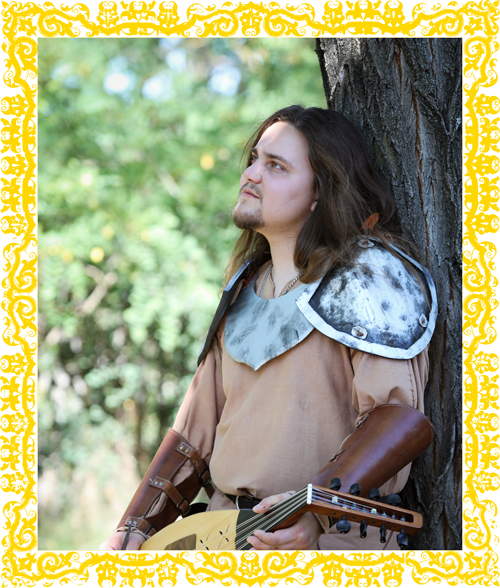 „I’ve been in the school since the 3rd grade of elementary school. Around the 7th grade, I started playing the guitar self-taught and joined the school’s youth band. My first serious band was Fortissimo, where I played melodic heavy metal as lead guitarist. I was introduced to the fantasy world by my band Noamuthen in about 2017. I met Jani and Isti at the concert of my band, and we are friends ever since. At first, I was a road bass technician in the band, then I slowly drifted into medieval and fantasy music even more than before. Since then, this has culminated in Game of Thrones, The Witcher and Vikings, they have very good music. I was originally a bass guitarist in Sárkánykönny, when I had to play guitar, and once Jani put a mandolin in my hand saying „Take it home and learn how to play.” (Thanks again) I’ve been playing mandolin in the band ever since.”